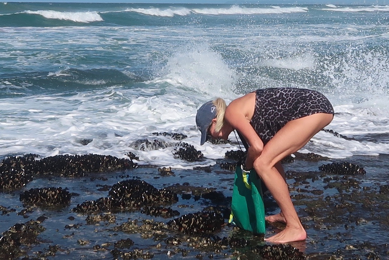 Harvesting mussels near eMdloti with Jeff – that’s Umhlanga in the background