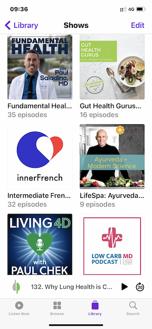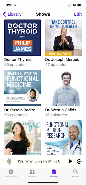 That’s how I found Dr Joseph Mercola’s Take Control of Your Health; gut expert Dr Mike Ruscio’s Dr Ruscio Radio, Dr Mark Hyman’s Doctor’s Farmacy, Chris Kresser’s Revolution Health Radio, Ari Whitten’s The Energy Blueprint, Drs Evan Brand and Justin Marchegiani’s Beyond Wellness Radio, The Dhru Purohit Podcast and Amy Myer’s Detox Podcast. Not to mention Living La Vida Low-Carb (how I wish I’d thought of that name first!) and the bubbly Biohacker Babes.